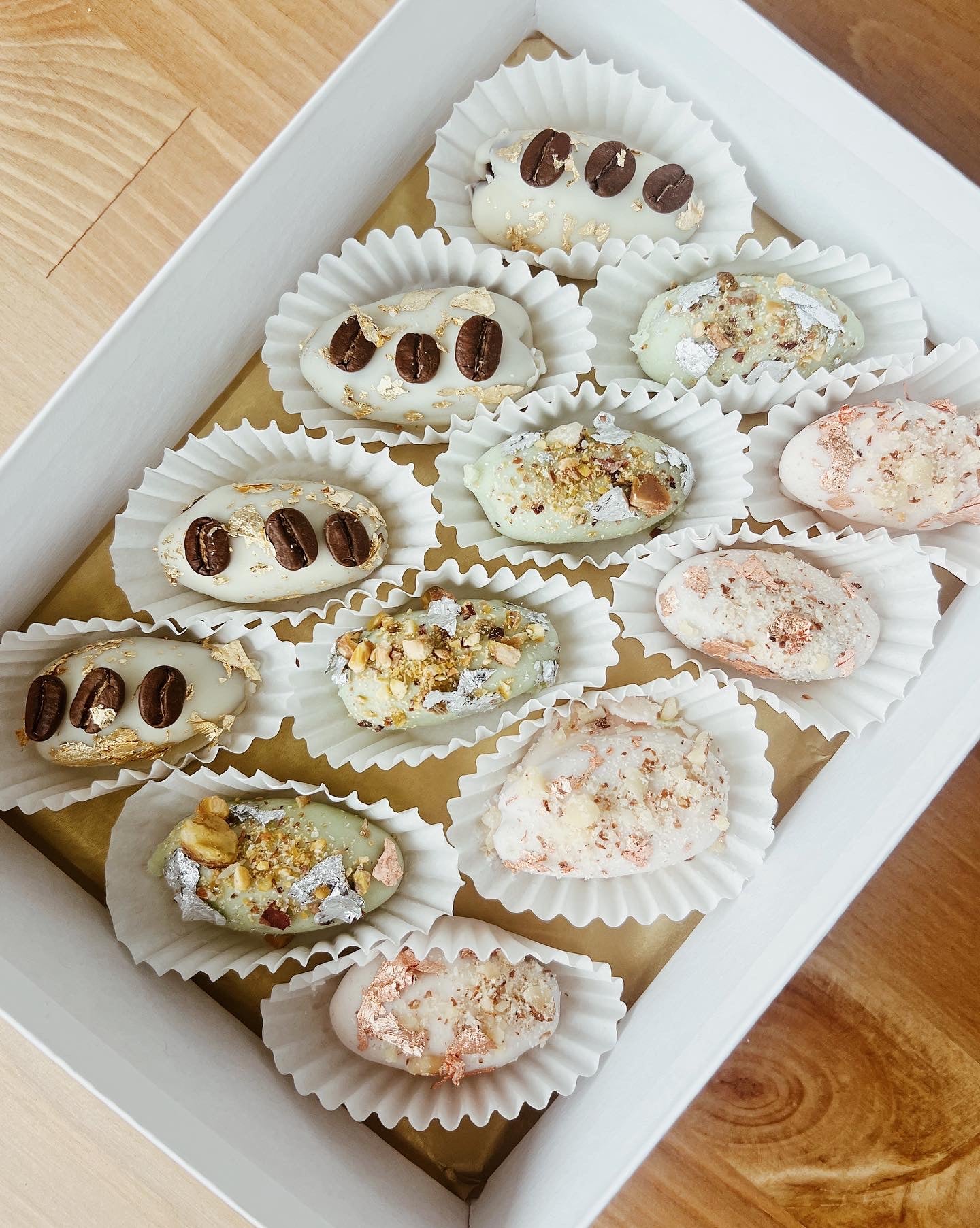 Introducing our luxurious Bespoke Almond Stuffed Chocolate Dates, the ultimate indulgence for those who appreciate the perfect harmony of rich, velvety chocolate and the natural sweetness of succulent Medjool dates. This exceptional treat is the perfect choice for any occasion, from weddings to corporate events, offering a unique and sophisticated twist on a classic Middle Eastern delicacy.